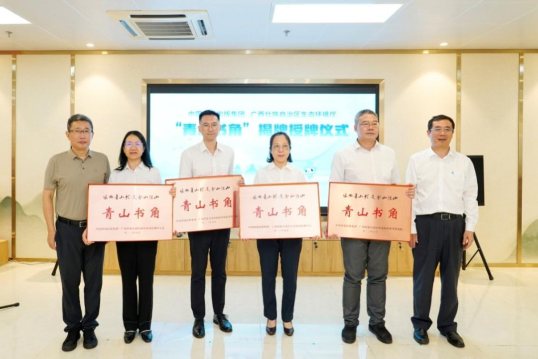深秋时节,八桂大地,丹桂飘香。9月25日,广西壮族自治区生态环境厅迎来中国环境出版集团生态文化精品项目——“青山书角”以“1+4”模式落户广西。“青山书角”的“1+4”模式是分别在自治区生态环境厅和自治区环境保护科学研究院、自治区生态环境监测中心、自治区辐射环境监督管理站、自治区海洋环境监测中心站落户。自治区生态环境厅党组书记、厅长陈亮与中国环境出版集团党委书记、董事长武德凯共同为“青山书角”揭牌。