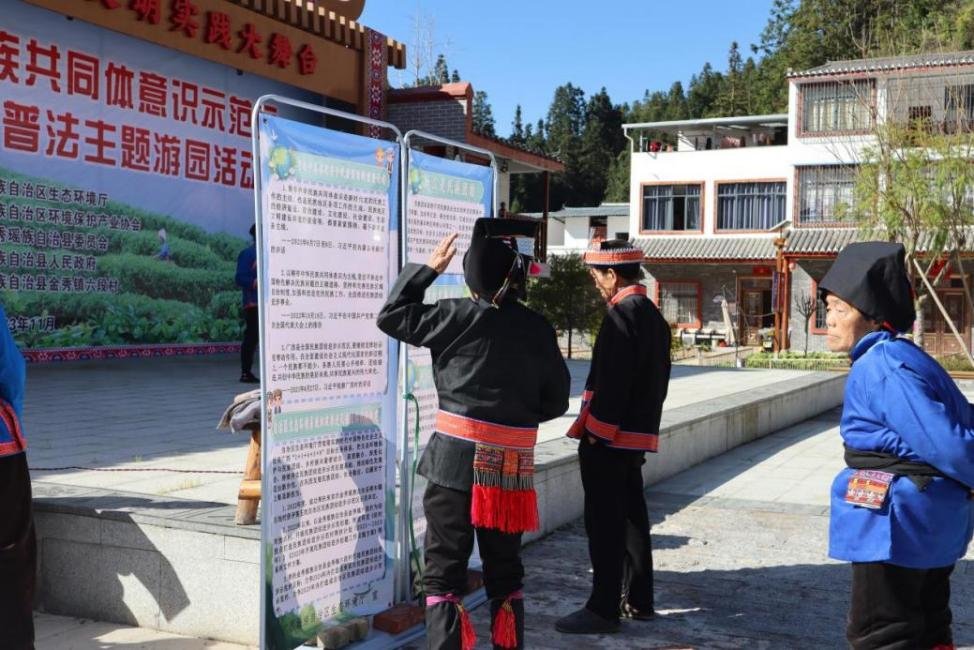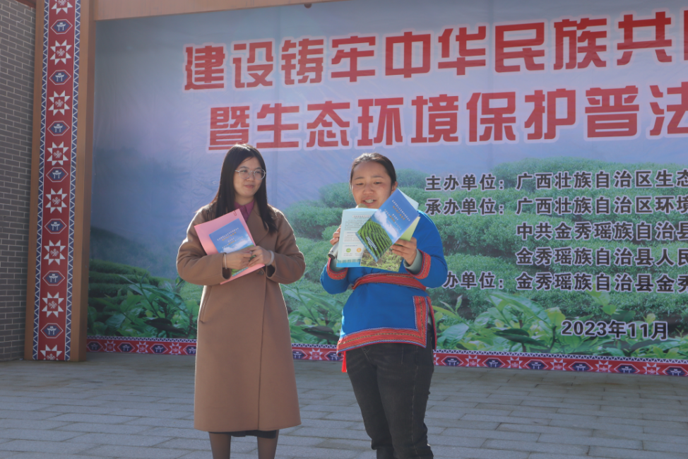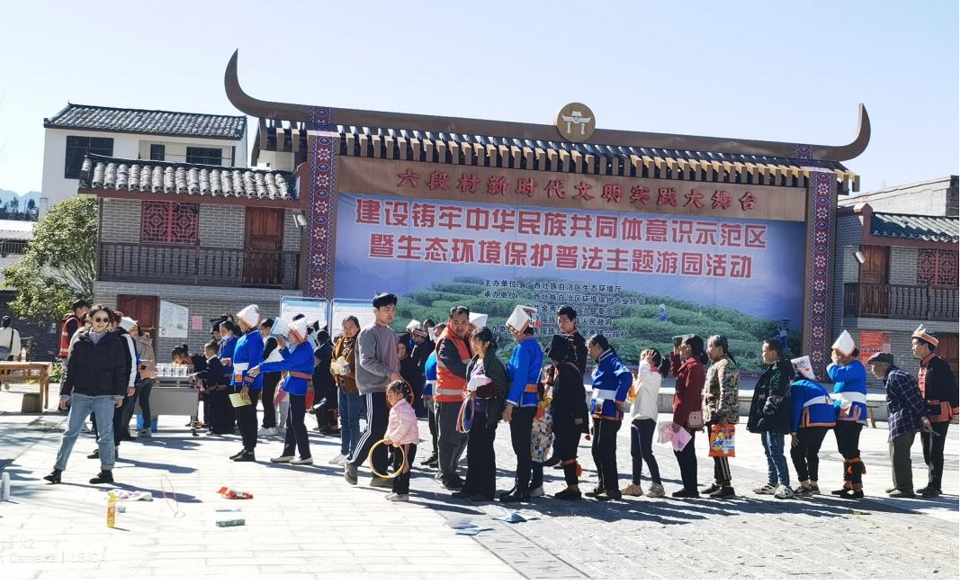 自治区生态环境厅新一轮挂点打造民族团结进步示范村为金秀瑶族自治县六段村,六段村是以茶山瑶为主的民族聚居地,瑶族文化底蕴深厚,民族氛围浓厚。为深入贯彻宣传生态文明理念,增强群众生态环境保护意识,助力建设铸牢中华民族共同体意识示范区,由自治区生态环境厅主办,广西环保产业协会、中共金秀瑶族自治县委员会和金秀瑶族自治县人民政府承办的“建设铸牢中华民族共同体意识示范区暨生态环境保护普法主题游园活动”于2023年11月18日在金秀瑶族自治县金秀镇六段村举行。