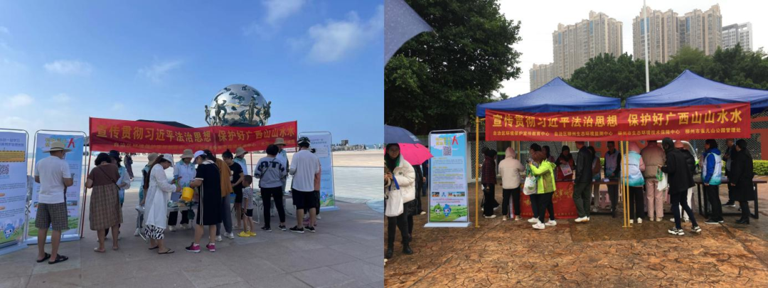 为深入学习宣传贯彻习近平法治思想和习近平生态文明思想,不断提升群众生态环境保护意识,广泛动员社会各界共同推进绿色低碳发展,11月份,自治区生态环境厅围绕“宣传贯彻习近平法治思想 保护好广西山山水水”主题,坚持党建引领推动业务融合,组织党员先锋队赴14个设区市组织指导生态环境部门联动开展精准宣传活动。