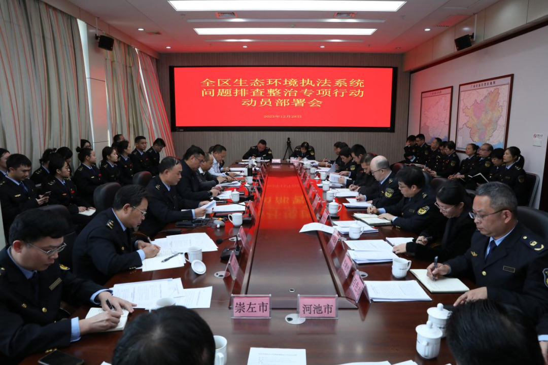 为做好典型案件以案促改工作,强化警示教育,12月28日,自治区生态环境厅召开全区生态环境执法系统问题排查整治专项行动动员部署会,自治区生态环境厅党组成员、副厅长欧波出席会议并作警示教育讲话。厅执法局负责人姚西平传达生态环境执法系统问题排查整治专项行动方案。