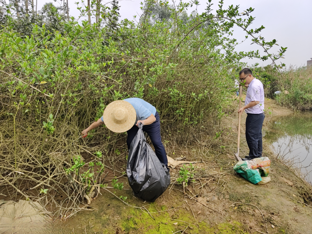 在“美丽有我——守护红树林”护林净滩活动现场,大家拿着钳子、铲子和袋子,走进红树林清理垃圾,将散落在红树林中的泡沫块、塑料袋、废竹竿、旧渔具等拾捡起来,集中后清运到垃圾收集点。同志们还就海洋垃圾清理整治、乡村生活垃圾收集与转运及筑牢民族共同体等工作进行交流。