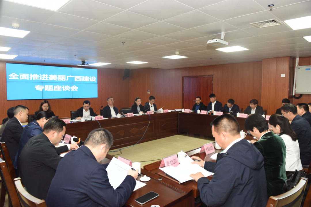 桂林市人民政府副市长龙杏华,自治区生态环境厅全面推进美丽广西建设重要文件编制工作专班有关成员参加座谈会。