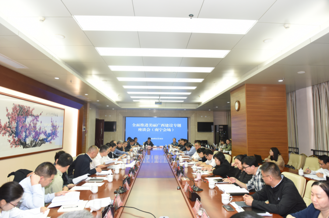 为扎实做好全面推进美丽广西建设重要文件编制工作,根据自治区党委、政府工作部署,4月10日,自治区生态环境厅党组书记、厅长陈亮在南宁市主持召开全面推进美丽广西建设片区专题座谈会,分层级、分领域、分类别听取部分设区市、县(区、市)、乡镇、村屯代表围绕本级如何全面推进美丽城市/县(区、市)/乡镇/乡村建设的意见建议。会议主要任务是聚焦“学方略、谋创新、抓落实”中的“谋”上下功夫,聚焦“一区两地”建设、宜居康寿美丽家园建设等国家和自治区决策部署,高站位、高标准、高质量、高水平谋划好全面推进美丽广西建设的路径图和施工图。