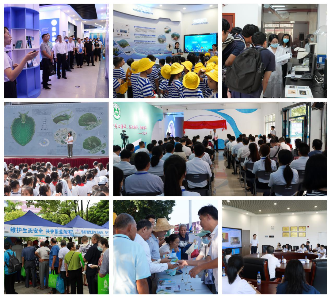 科普行动立足北部湾特色,建设了广西乃至全国首个以海洋生态环境监测为主题的科普展馆,并以此为基础不断打造广西海洋生态环境科普教育基地“升级版”,自开放以来,共组织开展了近100场科普活动,线下受益公众约2万人次。同时,针对不同群体科学设计科普活动:以广西首批科学家精神宣讲团成员(团体)的身份,组织宣讲员走进校园开展科普讲座、科学实验、标本展示、海洋生物探秘,重点提高青少年海洋生态和海洋科技知识;向社区居民、渔民科普海洋主要污染物来源,海滩垃圾、微塑料的危害,重点引导建立绿色生活理念,做好垃圾收集和分类;与企业共同探讨如何践行习近平总书记“绿水青山就是金山银山”的理念,携手推进美丽海湾建设和向海经济高质量发展。