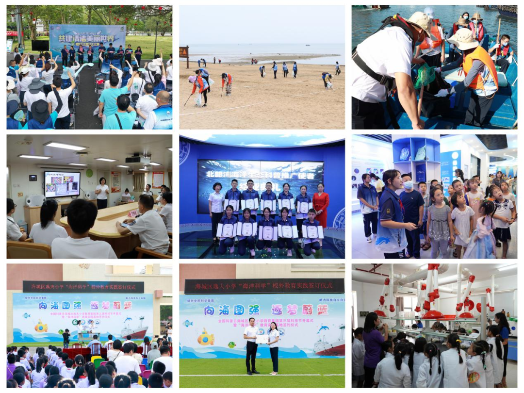 科普行动积极探索多部门跨行业联合科普机制,旨在推动形成北部湾海洋生态大保护平台,让更多公众参与其中。与广西科学院、广西海洋研究院、广西渔政执法总队、广西合浦儒艮国家级自然保护区、中交城投广西中马公司、北海市科协、北海市生态环境局、北海市各中小学等10多家单位联合开展科普宣传活动,广泛传播海洋环保知识;同时,联合北海市第一中学推出海洋环境科普推广使者团计划,利用寒暑假选拔学生科普培训并考核上岗,让科普对象向科普工作者就地转化;此外,还与北海市海城区逸夫小学集团探索开展海洋生态环境科普教育实践基地共建,共同致力于学生的科普教育研学工作。