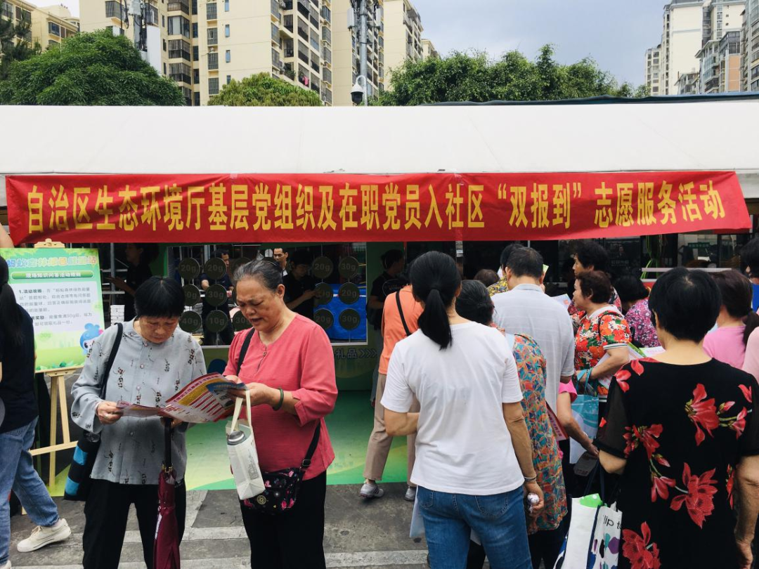 为深入学习宣传贯彻习近平生态文明思想和习近平法治思想,持续提升基层党组织和在职党员深入群众、服务社区的能力,广泛动员社会各界共同推进绿色低碳发展,5月15日,自治区生态环境厅机关党委组织党员干部赴南宁市青秀区丹凤社区开展“双报到”志愿服务活动。