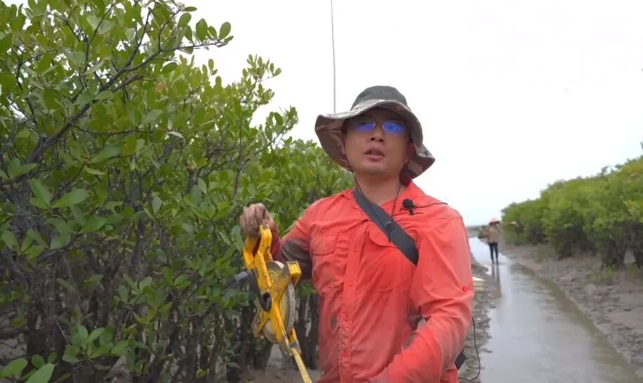 余星辰是第一次参与红树林生态系统监测工作,第一次感受到红树林深处的泥泞。“和想象中很不一样。”经验不足的他比同事身上的泥巴更多,一只鞋也陷在淤泥里拔不出来。“不过我今天也学到了很多有用的技能,希望以后可以越做越好。”余星辰说道。