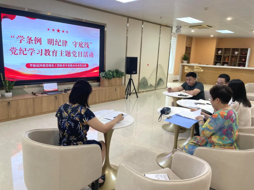 加强纪律建设是全面从严治党的治本之策。党纪学习教育开展以来,平陆运河建设绿色工程检查专家组办公室党支部把思想和行动统一到党中央决策部署上来,抓住学习重点、强化警示教育,把开展党纪学习教育作为重要政治任务。该党支部于5月29日下午开展“学条例 明纪律 守底线”党纪学习教育主题党日活动。