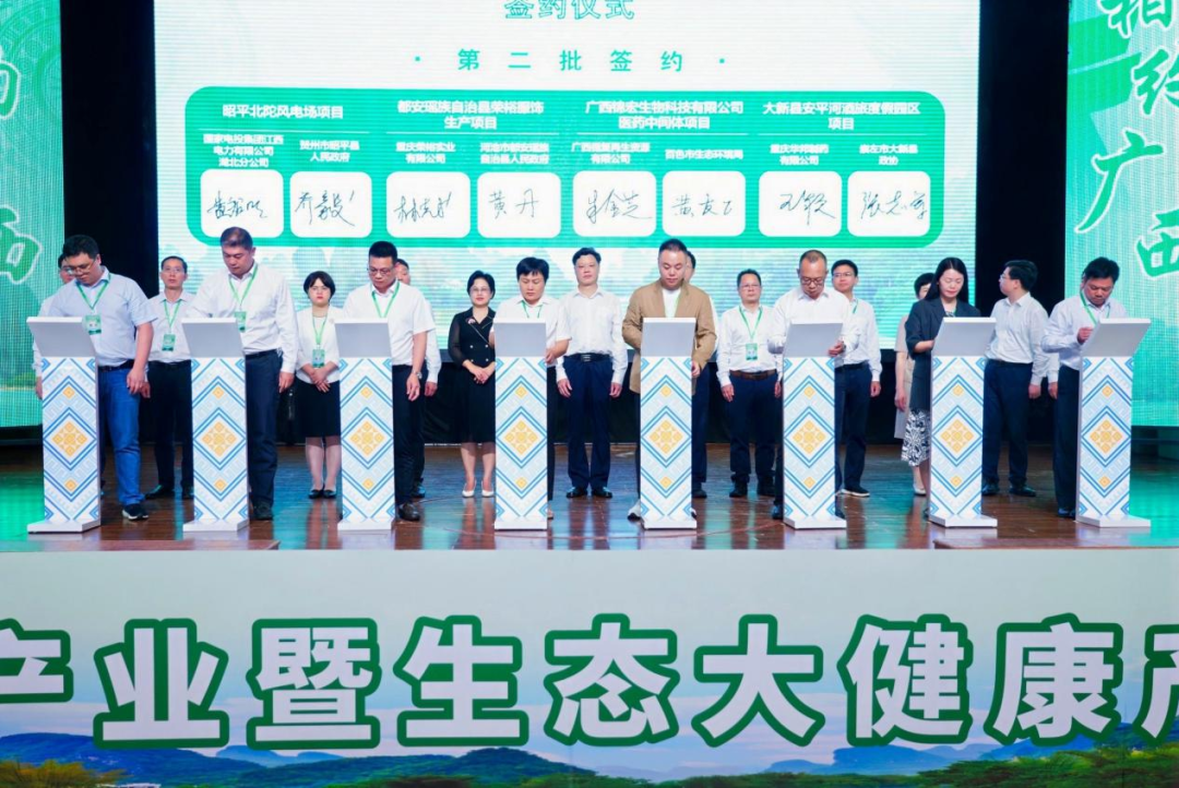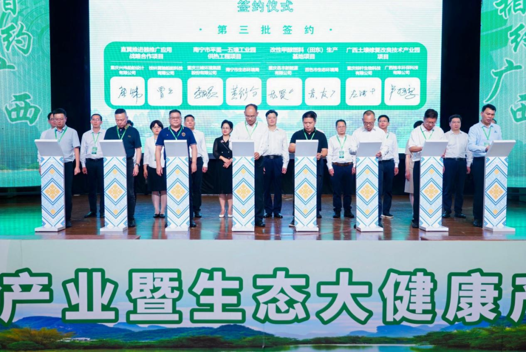 会上,共有12个项目进行现场签约,签约金额75亿元。防城港、玉林、百色、贺州、河池、来宾、崇左等市分别介绍本市生态环保产业和生态大健康产业发展情况以及在资源、市场、政策、生态等方面的优势,并发出共同发展的邀请和优惠政策的承诺;重庆市广西商会,广西重庆商会分别发言;桂渝6家参会企业代表围绕生态环保产业和生态大健康产业等进行推介。活动期间,还播放了《相约广西》宣传片,参会企业家们与广西有关政府部门代表进行了深入的交流洽谈,共同探讨合作机会和发展前景。