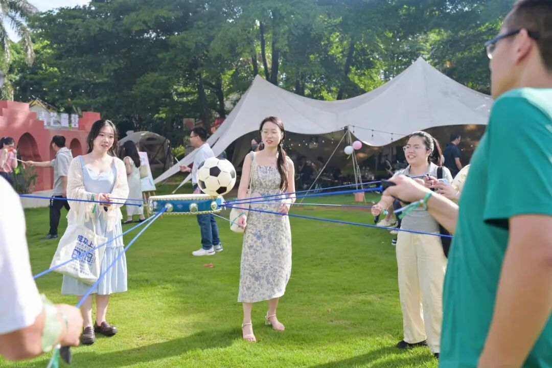 本次活动区别于传统形式的联谊活动,深度融合了生态环境保护主题,在轻松愉快的氛围中宣传广西生态优势、倡导保护广西生态之美。精心选址绿树成荫的城市营地——青芒露营·广西规划馆创意空间,以当下年轻人追崇的“城市微露营”理念开展,展示了一条“护此青绿、以绿生金”的绿色发展之路。在主题游戏环节,除了常规团体活动,还开展了“环保手拉手”“生态背篓”等10项生态环境主题游园活动,参与者完成全部游园打卡即可获得精美纪念品,让环保理念在趣味互动中走进大家的心里。