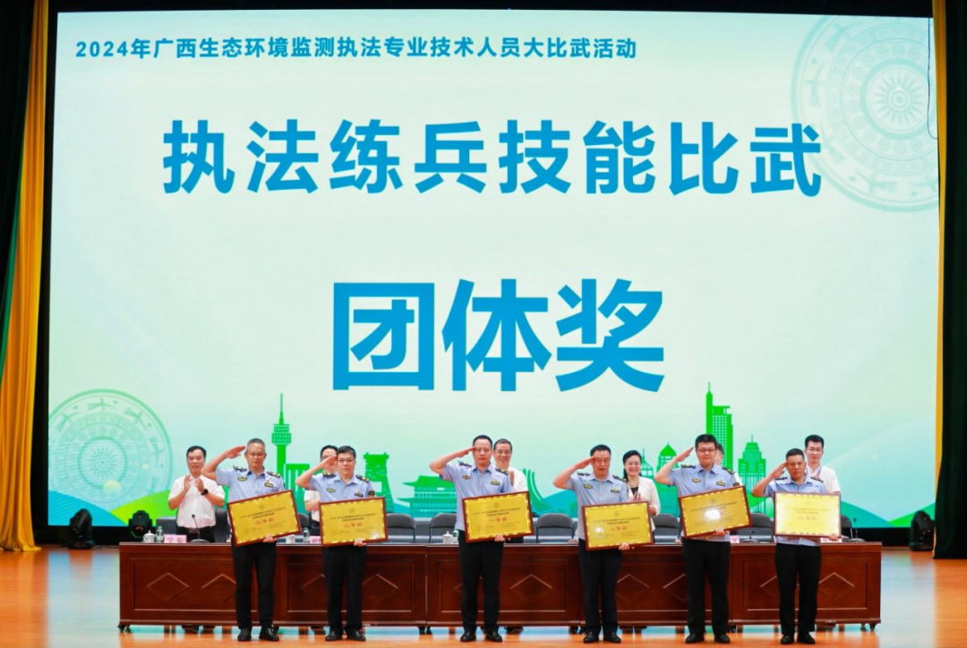 陈亮强调,近年来,习近平总书记亲自推动生态环境监测执法垂直改革,多次就生态环境监测执法工作发表重要讲话、作出重要指示批示,为做好新时代生态环境监测执法工作提供了根本遵循和行动指南。生态环境部相继印发相关文件,为推动执法队伍现代化专业化制度化建设以及推动建立监测网络一体化和技术装备数智化,实现高质量监测数据、高效能监测管理和高水平监测支撑指明方向。全区生态环境监测及执法队伍要切实提高政治站位,深刻领悟“两个确立”的决定性意义,增强“四个意识”、坚定“四个自信”、做到“两个维护”,锚定美丽广西建设目标,系统实施广西生态环保“116620”工程,以本次大比武为契机,持续提升从山顶到海洋的一体化监测能力,加快建立与之相适应的现代化生态环境监测体系,打造规范化的生态环境保护综合行政执法队伍,弘扬“细、实、严、勤、精”的务实工作作风,以高昂的斗志、精湛的技艺、过硬的作风保障监测数据“真、准、全、快、实、新”,为全面推进美丽广西建设提供支撑保障。