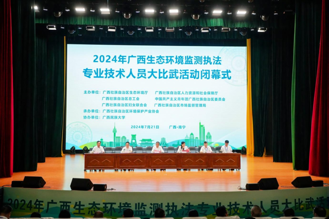 7月21日,2024年广西生态环境监测执法专业技术人员大比武活动在南宁市圆满落下帷幕。自治区生态环境厅党组书记、厅长陈亮出席闭幕式并讲话。广西民族大学党组副书记、校长韦仕珍,自治区市场监管局二级巡视员胡振洲,自治区人力资源社会保障厅二级调研员罗浩其,共青团广西区委志工部副部长曾祥高出席闭幕式。自治区生态环境厅党组成员、副厅长、总工程师宁耘主持闭幕式并宣读获奖名单。