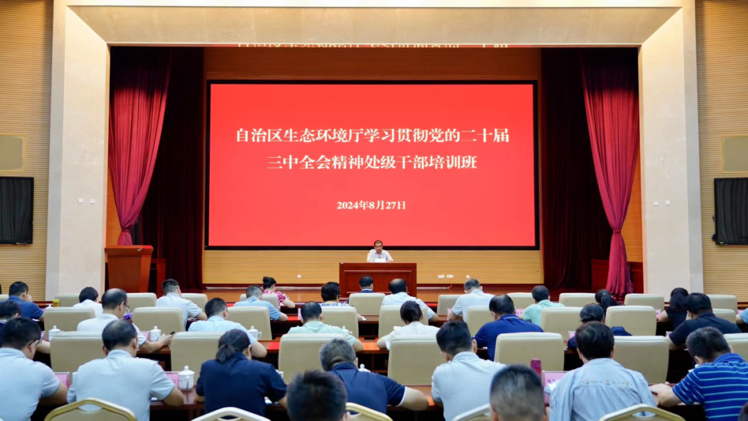 为深入学习贯彻党的二十届三中全会精神,8月27日,自治区生态环境厅举办学习贯彻党的二十届三中全会精神处级干部培训班,厅党组书记、厅长陈亮出席开班式并授课。