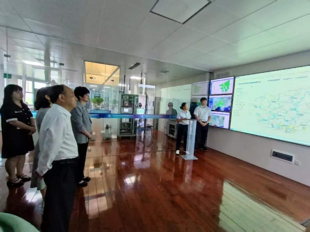 梁春花一行首先来到自治区生态环境监测中心,实地参观了广西新污染物监测预警与环境健康评估重点实验室、重金属检测实验室及大气监测超级站,详细了解了广西环境空气质量监测网络、秸秆禁烧综合立体监控网、广西水环境质量预测预警平台的运行成效,并听取了生态环境监测科普成果汇报,对科普产品研发进行了现场指导。通过实地考察,梁春花一行深刻感受到“天空地一体化”监测网络与数智化监测技术在守护美丽广西绿水青山方面取得的显著成果,并给予了高度评价。