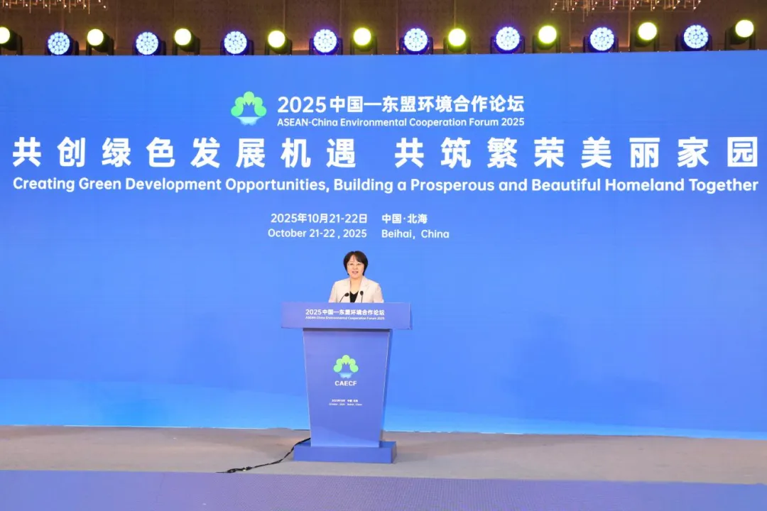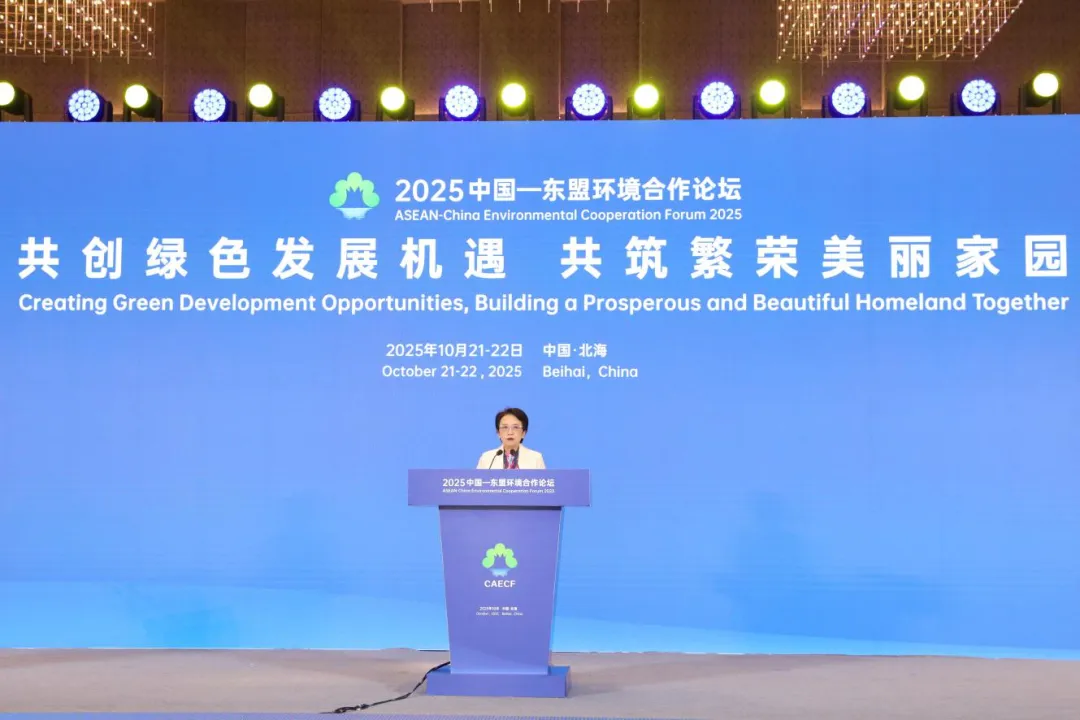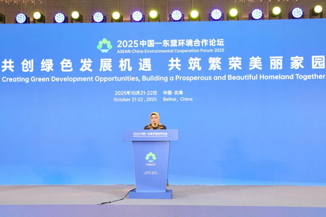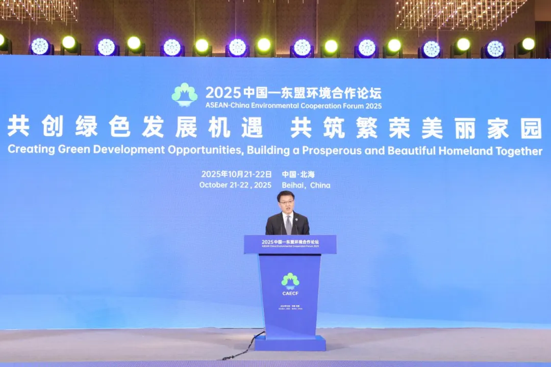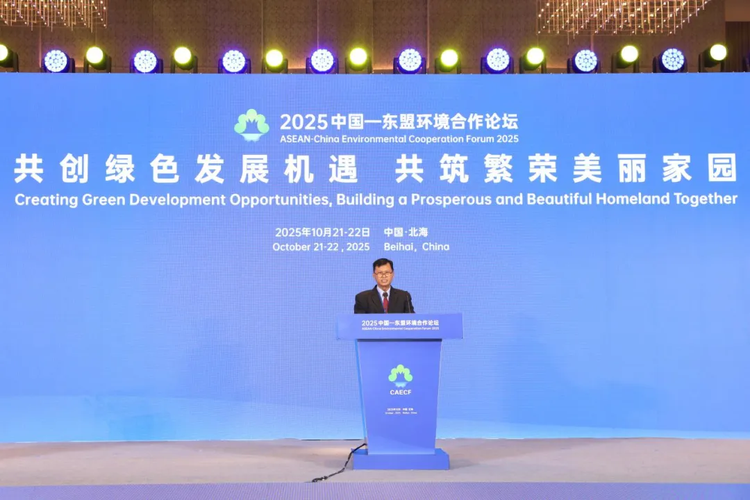 为深入落实全球发展倡议与中国—东盟领导人会议精神,进一步深化中国与东盟各国在生态环境治理与可持续发展领域的务实合作,10月21—23日,2025中国—东盟环境合作论坛在广西壮族自治区北海市举办,论坛主题为“共创绿色发展机遇,共筑繁荣美丽家园”。“一带一路”绿色发展国际联盟理事长、中国生态环境部原副部长赵英民,广西壮族自治区副主席眭国华,柬埔寨环境部副国务秘书欧恩·班哈涅,缅甸自然资源和环境保护部副部长吴敏特,泰国自然资源与环境部副常务秘书普里雅蓬·苏瓦纳格德,棕榈油生产国理事会副秘书长穆斯达利法·马赫穆德出席开幕式并致辞。中国生态环境部国际合作司二级巡视员崔丹丹主持开幕式。
