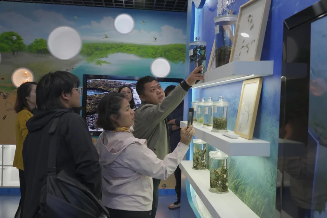 专家学者一行参观了广西海洋生态环境科普教育基地,详细了解了广西海洋生态环境监测技术、海洋环境质量状况、海洋生态环境保护成果等方面的内容,并重点就布氏鲸、中华白海豚监测与保护、海草床、红树林及珊瑚礁典型海洋生态系统等板块进行深入探讨与交流。