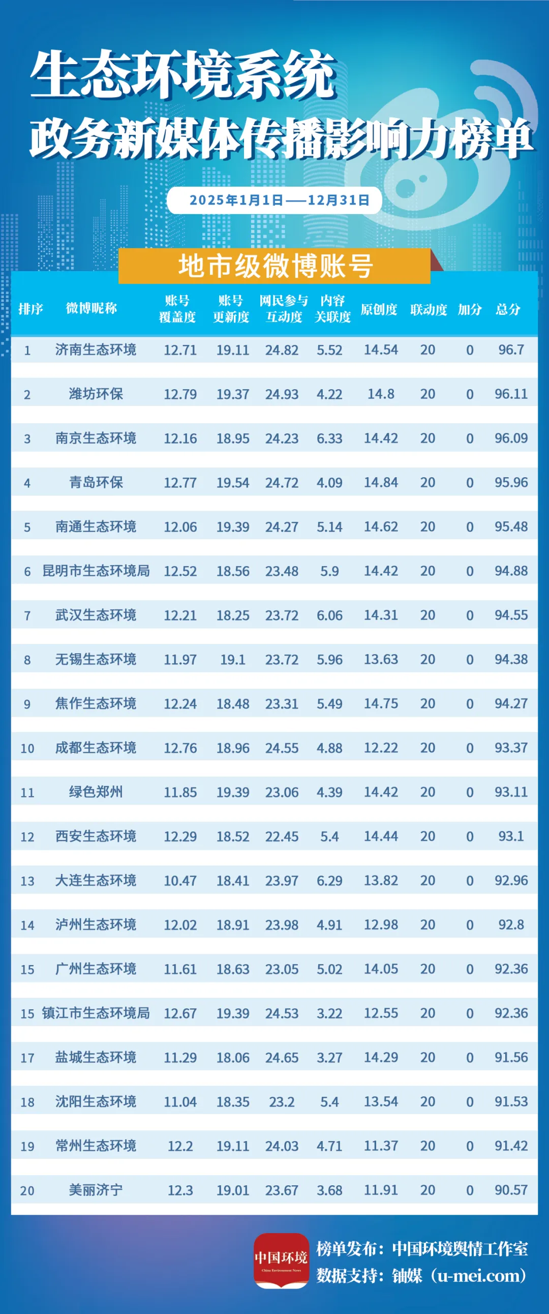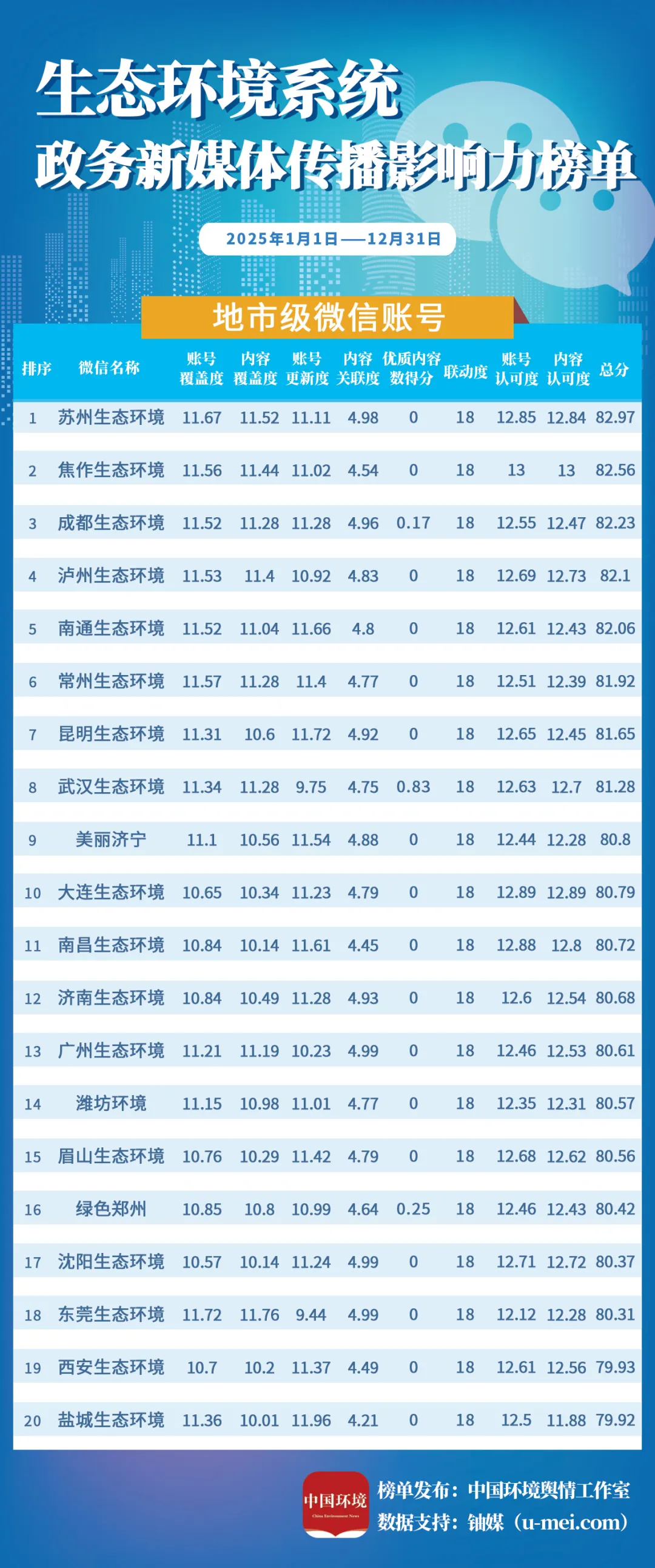 2025年生态环境政务新媒体“期末考”放榜啦!哪些账号成了“顶流”?哪些爆款内容让你忍不住点赞转发?快来一起围观这份热气腾腾的“战绩单”!