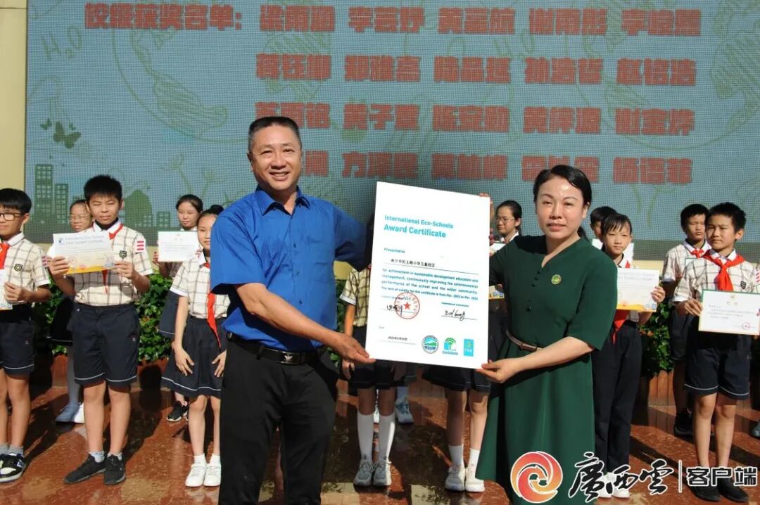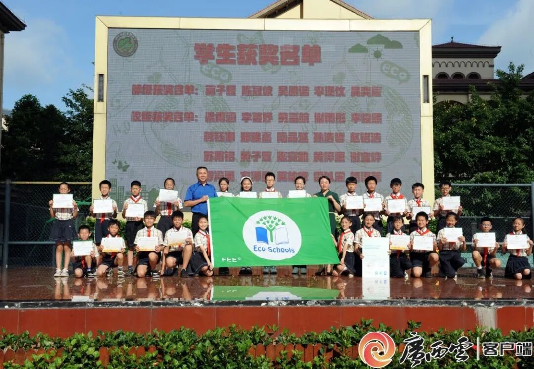 6月21日上午,南宁市民主路小学教育集团五象校区举行“国际生态学校”绿旗荣誉授旗仪式。