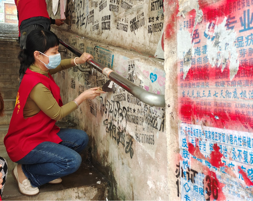 朱少军在平南街道朝阳社区开展牛皮癣整治活动