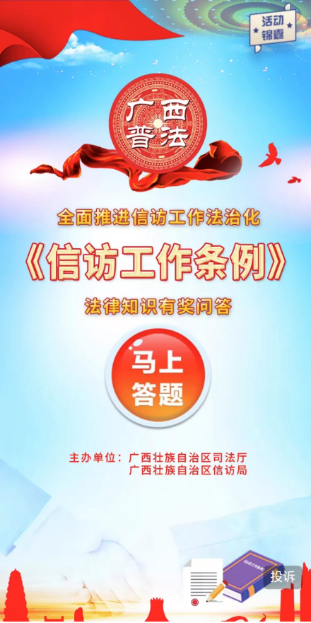 自治区信访局、自治区司法厅于2024年5月20日至5月31日在全区开展《信访工作条例》网上有奖知识竞答活动。