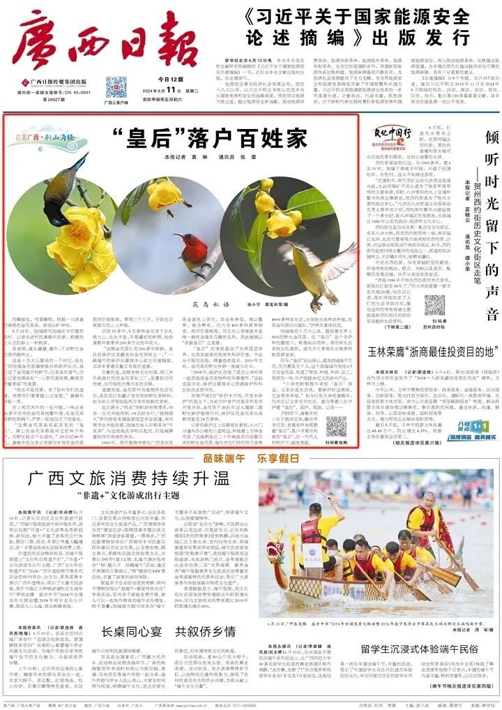绿色映底蕴,山海见初心。广西是全球生物多样性热点地区和中国南方重要生态屏障,生态质量、生物多样性丰富度等均居全国前列。随着环境改善、保护力度加大,珍稀动植物的栖息地变多了,种群数量也增加了。6月5日是世界环境日,让我们跟随记者的脚步,一起看看八桂大地上这些珍稀的精灵,感受万物蓬勃生长,念好新时代生态环境保护的“山海经”。
