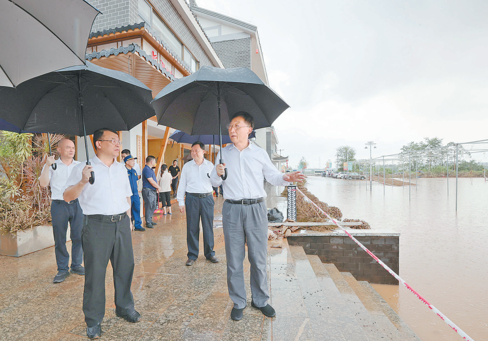 9月12日,自治区党委书记刘宁赶赴崇左市宁明县防洪救灾一线,检查指导防洪抢险救灾工作。广西云-广西日报记者何学俏/摄