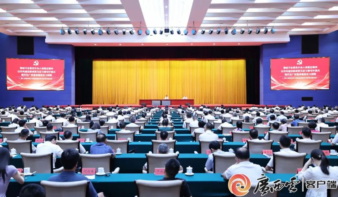 深入贯彻中央八项规定精神学习教育中央第九指导组成员,自治区党委、人大常委会、政府、政协领导班子成员,自治区高级法院院长、检察院检察长,各设区市党委书记、纪委书记监委主任、市委组织部部长,区直单位主要负责同志,区管企业、高校党委主要负责同志,以及部分年轻党员、干部代表等参加。