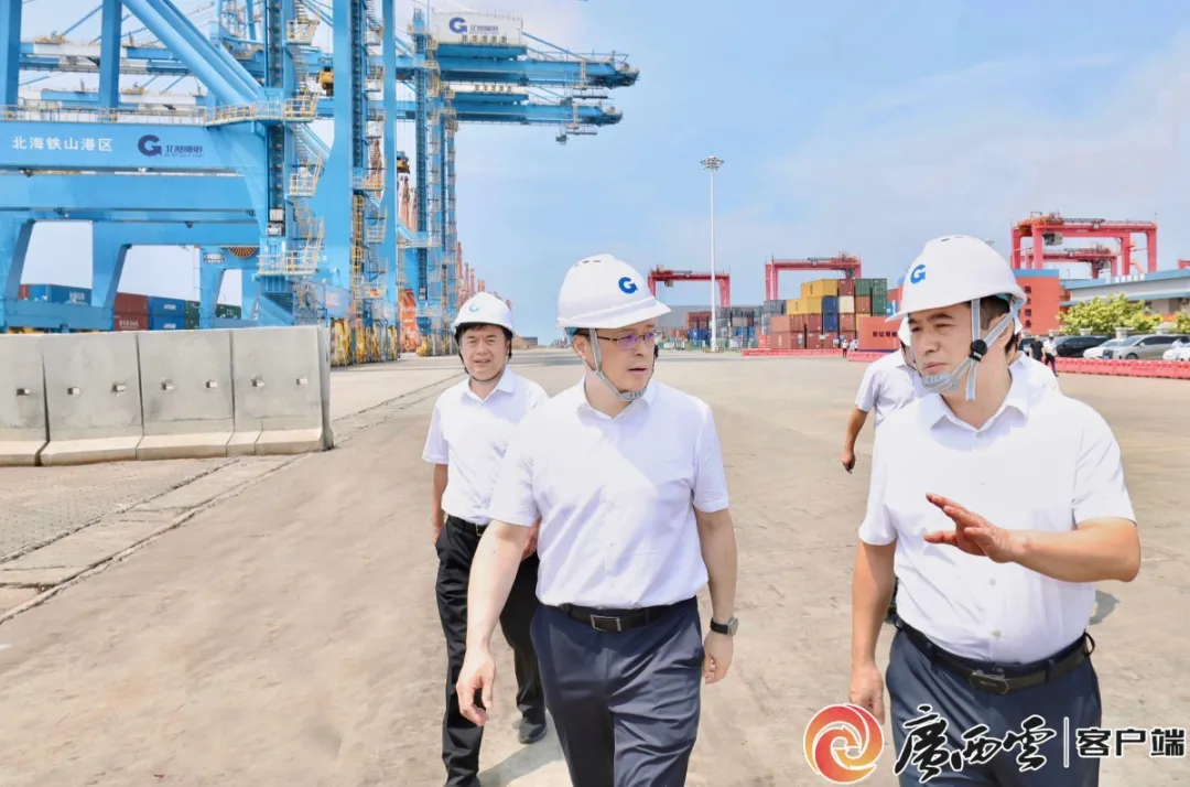 7月25日至27日,自治区主席韦韬先后深入北海市、防城港市、钦州市蹲点调研,走港口、进园区、看企业,全面了解沿边临港产业发展情况,强调要深入学习贯彻习近平总书记关于广西工作论述的重要要求,贯彻落实自治区党委十二届十次全会和全区年中工作会议暨三季度经济发展调度会精神,向海图强、开放发展,创新驱动、高效协同,高水平共建西部陆海新通道,大力发展海洋经济、临港产业,加快构建现代化产业体系,持续激活向海经济“蓝色引擎”。
