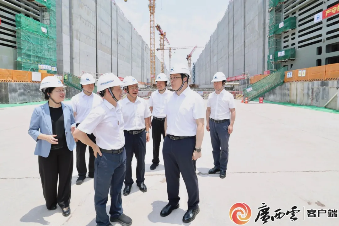 在平陆运河青年枢纽项目,韦韬了解平陆运河建设进展、运河经济带规划情况以及青年枢纽项目建设情况。广西云-广西日报记者 邓华 摄