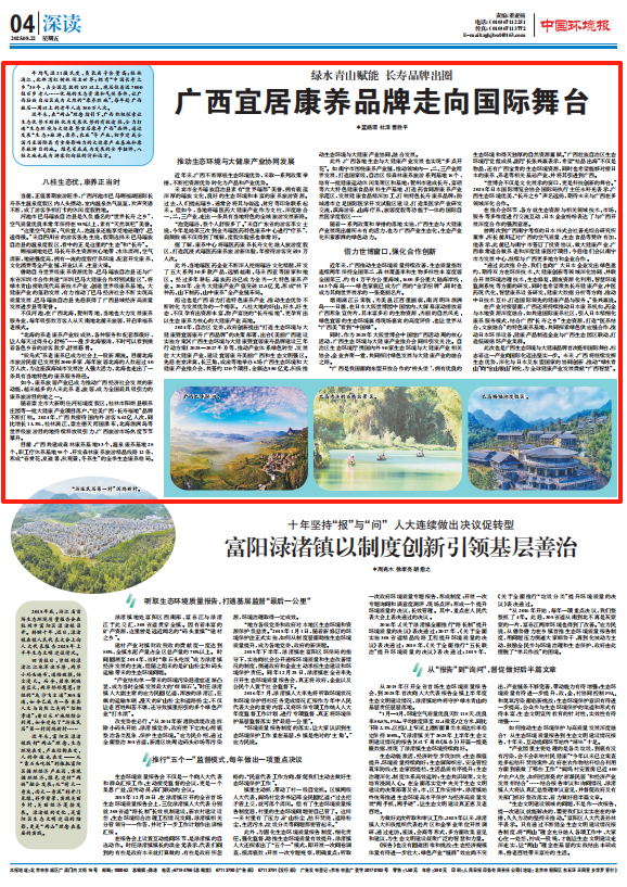 近年来,在“两山”理念指引下,广西积极探索让生态优势不断转化为发展优势的有效途径,全力打造“生态环境与大健康暨宜居康寿广西”品牌,通过发展“生态+旅游、康养、农业”等产业,初步建成全国乃至国际具有重要影响力的大健康产业基地和康养旅游目的地。绿色家底成为发展的金字招牌,八桂大地也成为游客们向往的诗和远方。