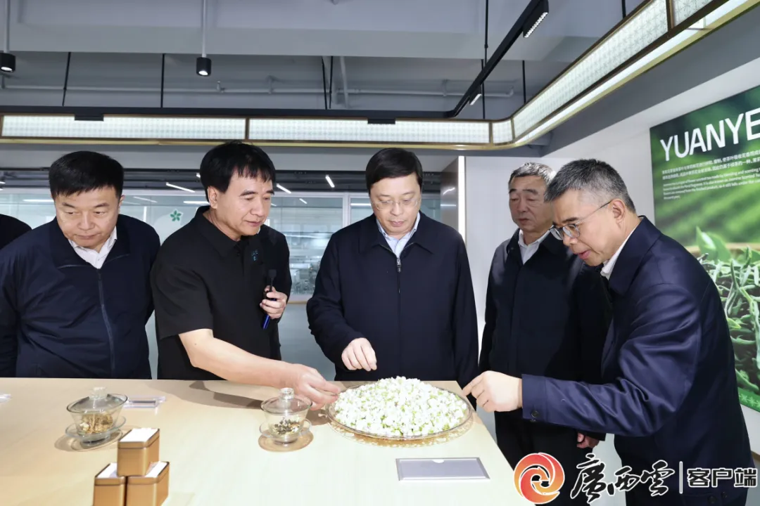 11月13日至14日,自治区主席韦韬深入南宁市横州市、宾阳县、上林县开展调研。韦韬来到广西中肯茶业有限公司,了解茉莉花产业发展生产情况。广西云-广西日报记者 邓华 摄