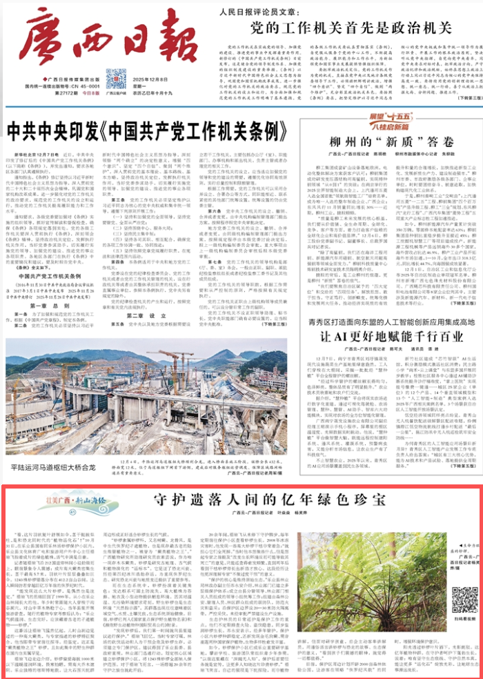 “保护的核心是维持原始生态。”乐业县林业局林政办副主任苏永安介绍,林业部门已建立多层级保护体系:成立由县分管领导、林业部门相关人员组成的领导小组统筹工作;组建由森林公安、管理人员、林区群众组成的联防队,防范火灾和盗采;沿保护区边界设20—30米防火隔离带,严控采伐,未经审批严禁建设生产设施。