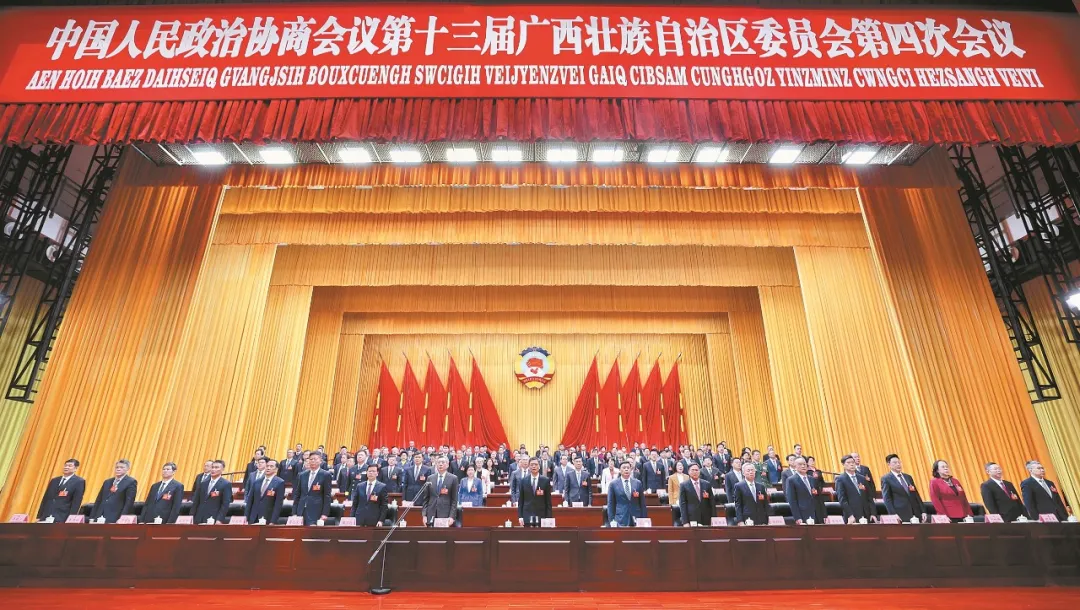 中国人民政治协商会议第十三届广西壮族自治区委员会第四次会议圆满完成大会各项议程后,2月5日上午在南宁胜利闭幕。