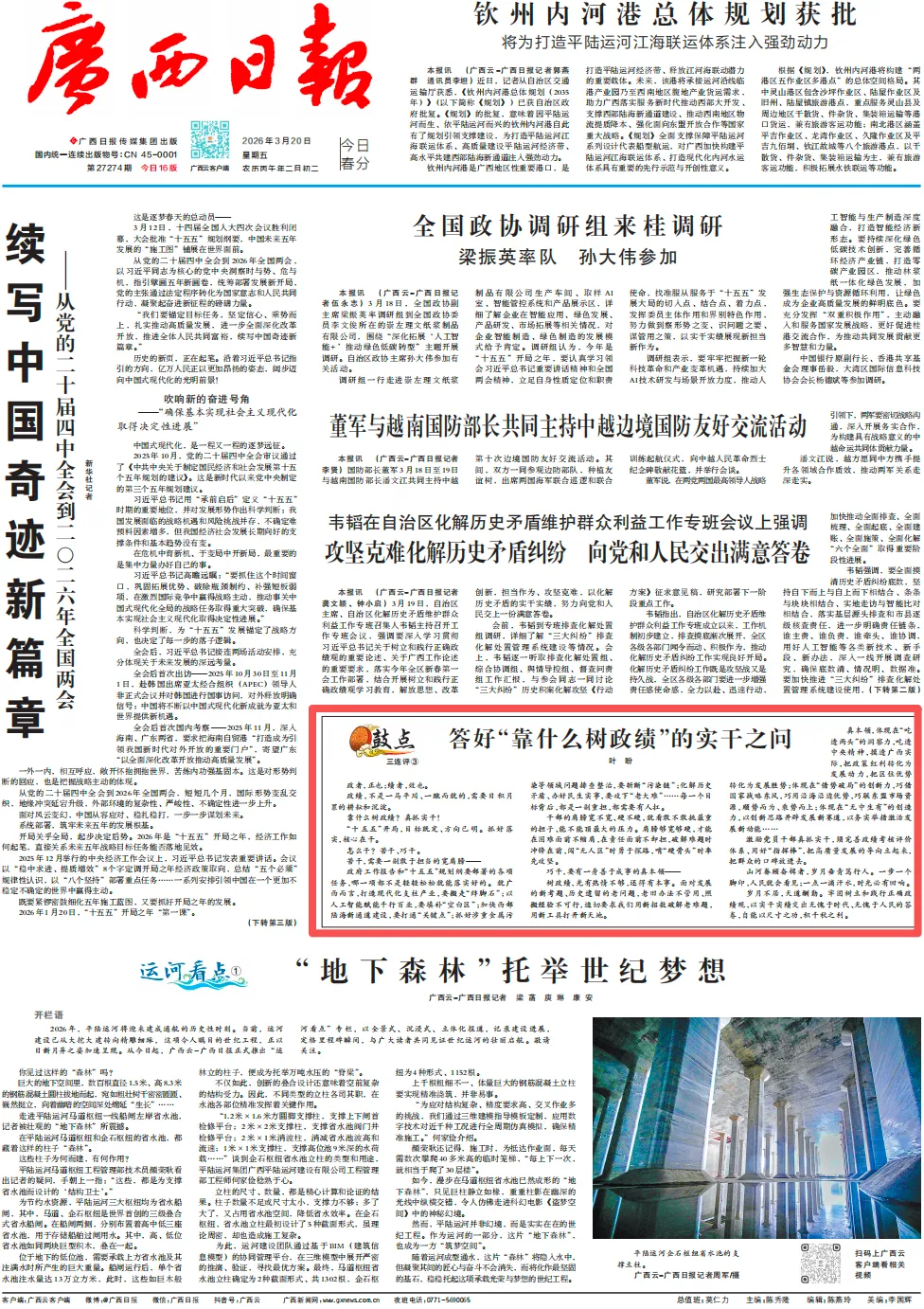 今日(3月20日),广西日报头版刊发“鼓点”评论文章《鼓点三连评③:答好“靠什么树政绩”的实干之问》。全文如下——