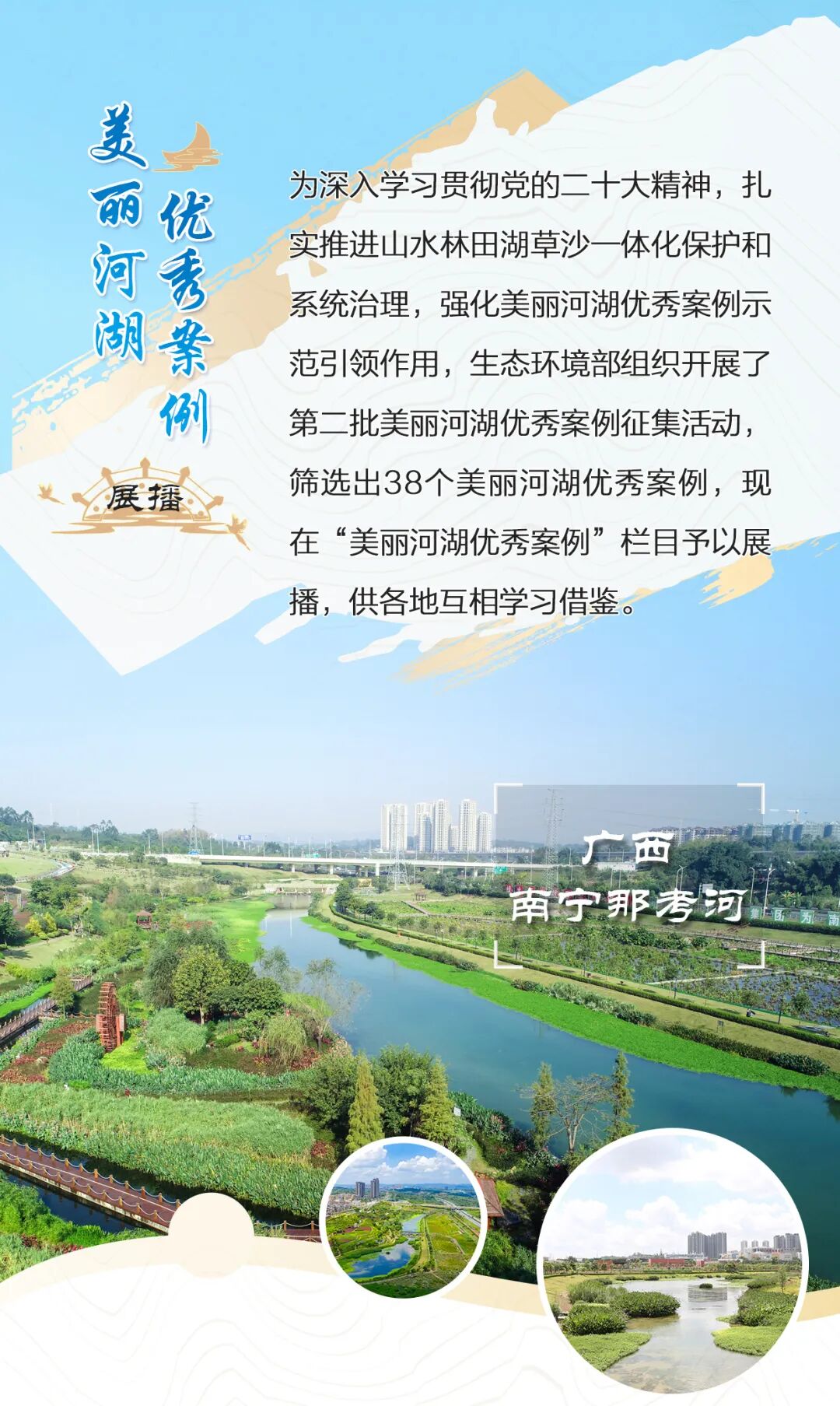 那考河运用“全流域治理”和“海绵城市”相结合的治水理念,实现流域高质量发展和高水平保护。水质从原来劣V类提升至Ⅳ类。近年来,新增的水生动植物、飞禽鸟类共38种,流域生态环境显著改善。在那考河流域治理模式和理念的带动下,南宁市先后在沙江河、心圩江、水塘江、朝阳溪等内河综合治理项目中推广了“那考河模式”,城市内河“化茧成蝶”,深受市民眷恋;百里秀美邕江英姿绽放,成为广西首府靓丽名片,人民群众幸福感满意度显著提升。