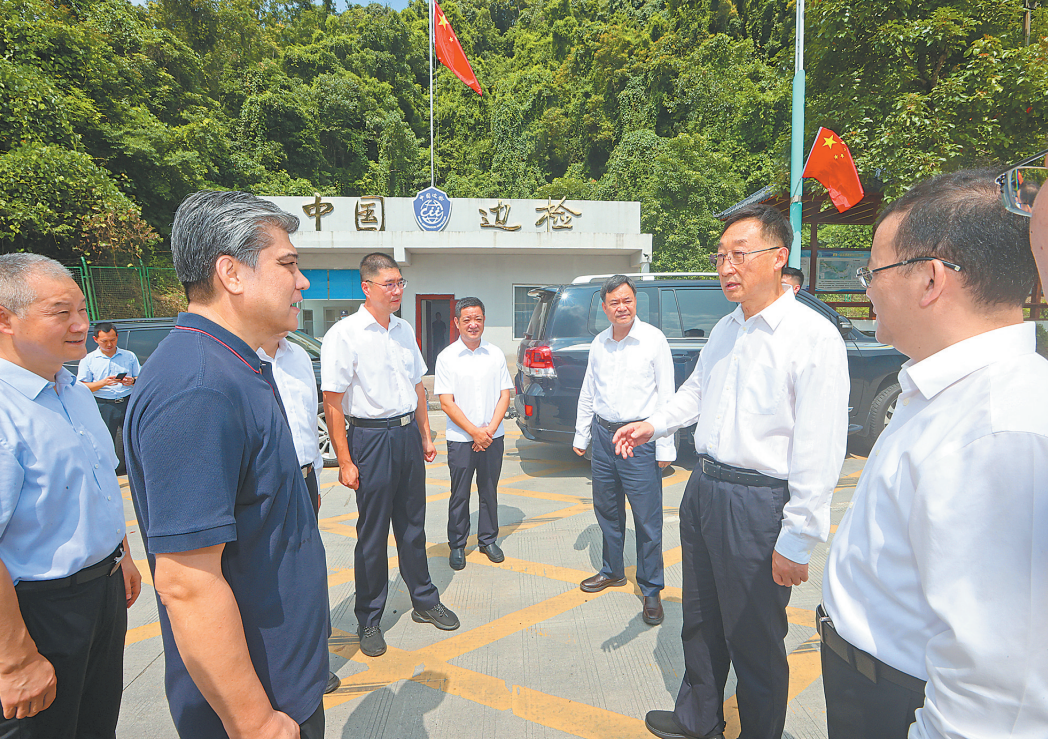 8月18日,自治区党委书记刘宁深入崇左凭祥中越智慧口岸项目建设现场,调研项目总体规划、通关便利化以及口岸自动化、信息化建设等情况。广西云-广西日报记者何学俏/摄