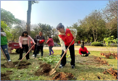 活动中,大家挥锹铲土、培土、围堰、浇灌定根水,合力种下了多株树苗,为动物园增添了一抹新绿。植树现场,欢声笑语不断,大家分工合作,默契配合,共植一抹绿,同献一颗心,共同为美化环境、保护生态贡献自己的力量。除了植树活动,现场还开展了生态环保知识宣传等丰富多彩的活动。通过这些活动,进一步增强了大家的环保意识和生态文明观念,营造了全社会共同参与生态文明建设的良好氛围。此次义务植树活动不仅美化了环境,更在大家心中播下了绿色的种子。柳州中心职工纷纷表示,要以此次植树活动为契机,将绿色发展理念融入日常工作和生活中,为推动全民义务植树活动深入开展、持续擦亮“山清水秀生态美”金字招牌贡献自己的力量。