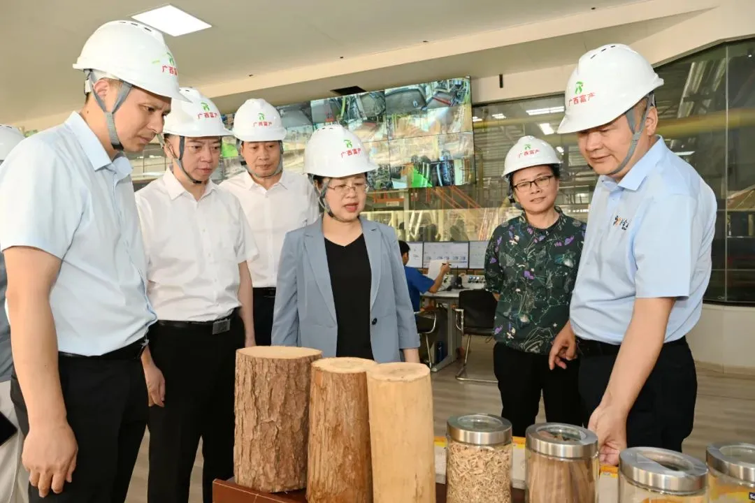 钟畅姿(右三)到广西富产木业有限公司,调研项目建设投产情况及企业环保工作情况。融媒体记者 王湖禄 摄
