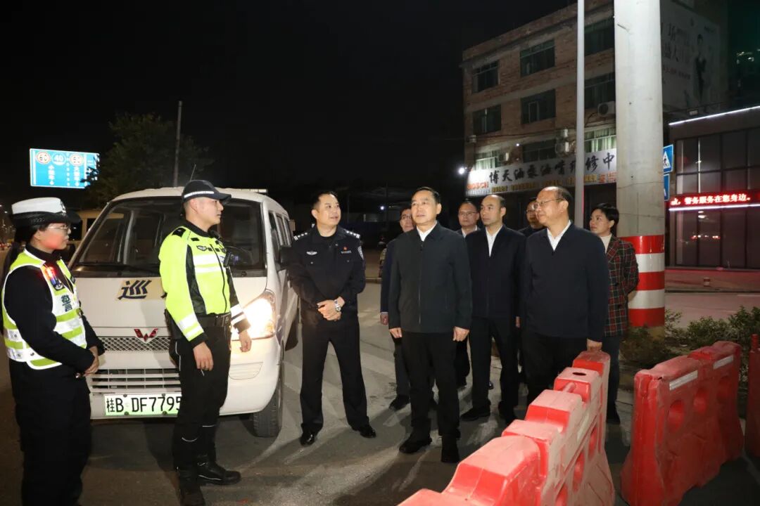 图为彭代元在北环路与粤湘桂大道交叉口,详细了解大货车禁行、绕行方案落实情况