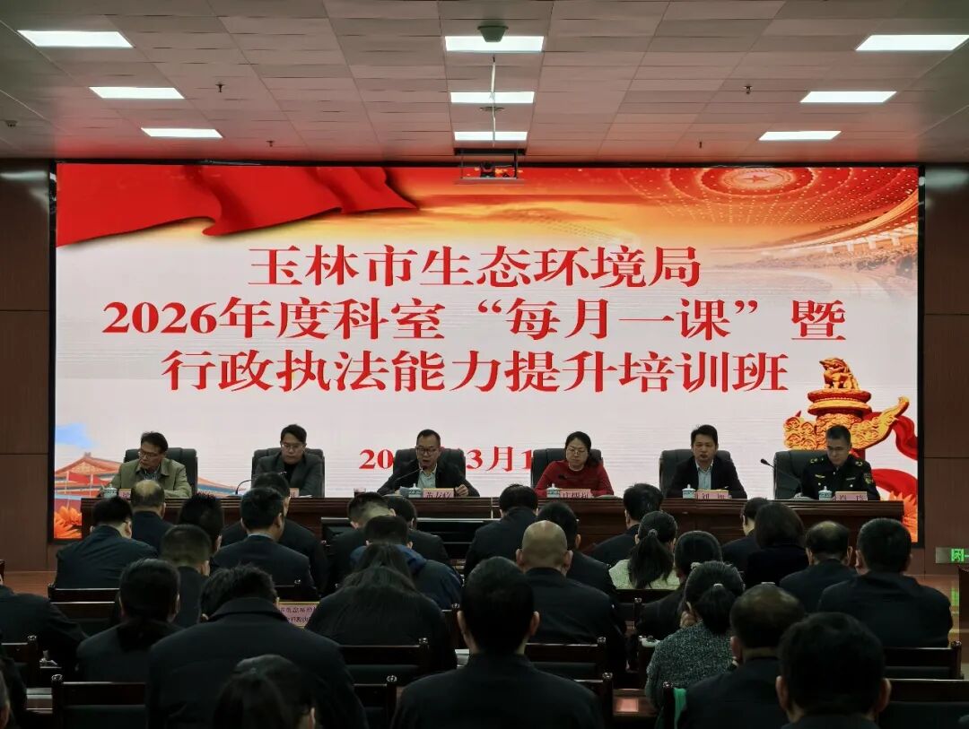 春潮涌动启新程,砺兵强能正当时。3月11日,玉林市生态环境局2026年度科室“每月一课”暨行政执法能力提升培训第一期开班,正式启动全员轮训。局党组书记、局长黄友政同志作开班动员。