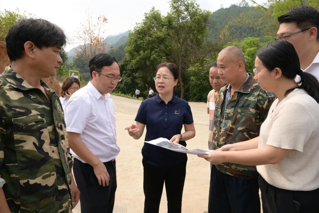 钟畅姿(左三)到福旺镇坡心村委会十四村民小组与第十二村民小组林地权属纠纷点,调研历史矛盾纠纷化解工作并现场接待信访群众。融媒体记者 王湖禄 摄